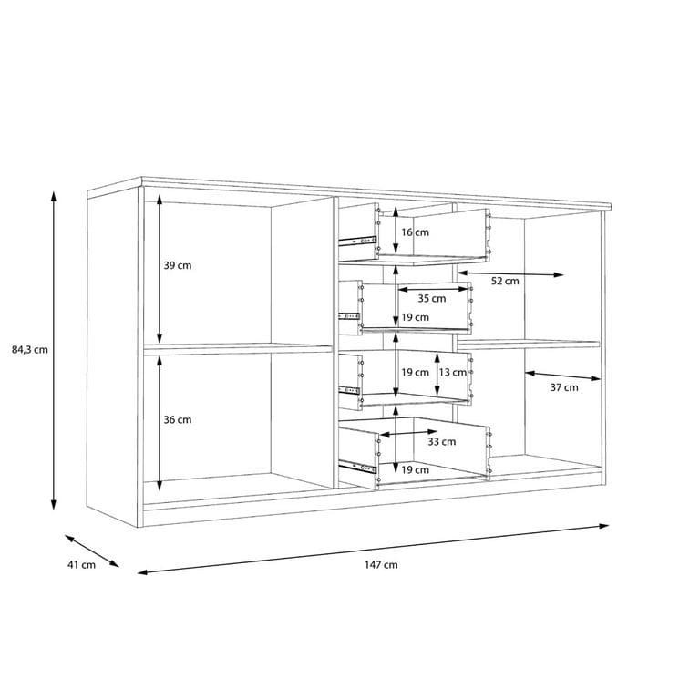 Išmatavimai: A: 84cm P: 147cm G: 41cm