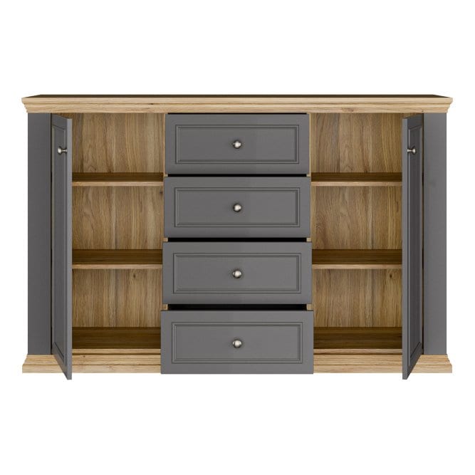 PONTYPOOL PNTK233-Q243 komoda-indauja – elegantiškas ir talpus baldas, puikiai tinkantis svetainei ar valgomajam.