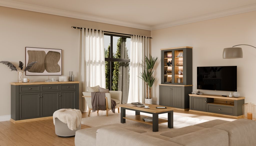 PONTYPOOL PNTK233-Q243 komoda-indauja – tai universalus ir estetiškas sprendimas tiems, kurie siekia suderinti praktišką laikymo funkciją su moderniu dizainu. Šis baldas puikiai tinka svetainei, valgomajam ar net erdvesniam prieškambariui, kur svarbu palaikyti tvarką ir išlaikyti vizualinę harmoniją.