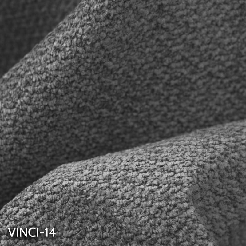 Vinci‑14 audinio apmušalas pasižymi malonia tekstūra ir subtiliu atspalviu. Neutralus dizainas leidžia sofa-lovą lengvai derinti prie įvairių interjero stilių – nuo modernaus iki klasikinio. Audinys suteikia baldui jaukumo ir prisideda prie ramios, poilsiui palankios atmosferos kūrimo namuose.
