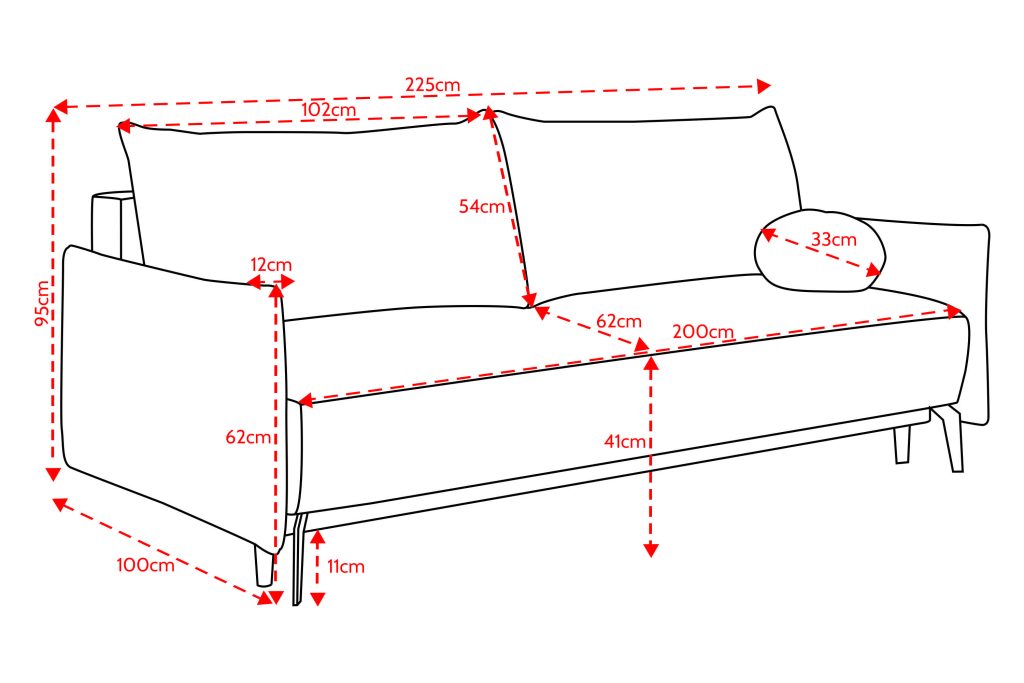 Išmatavimai: A: 95cm P: 225cm G: 100cm