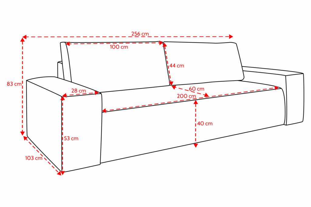 Išmatavimai: A: 83cm P: 256cm G: 103cm