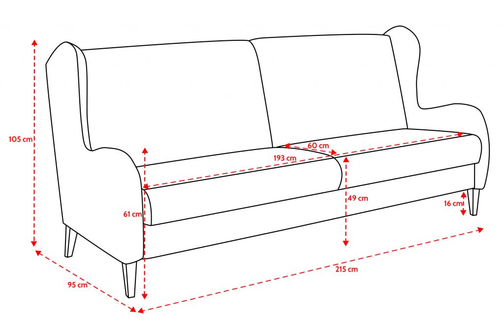 Išmatavimai: A: 105cm P: 215cm G: 95cm