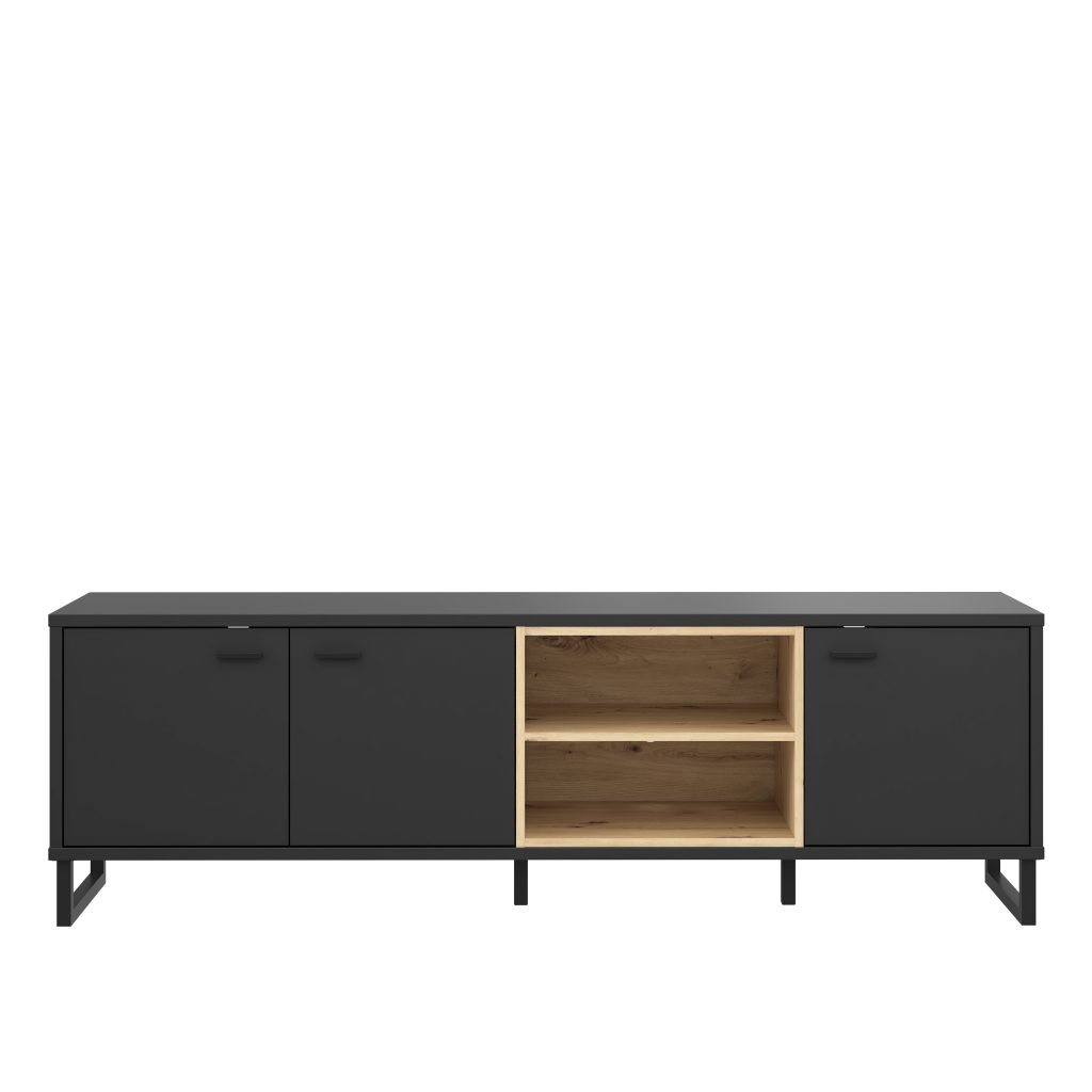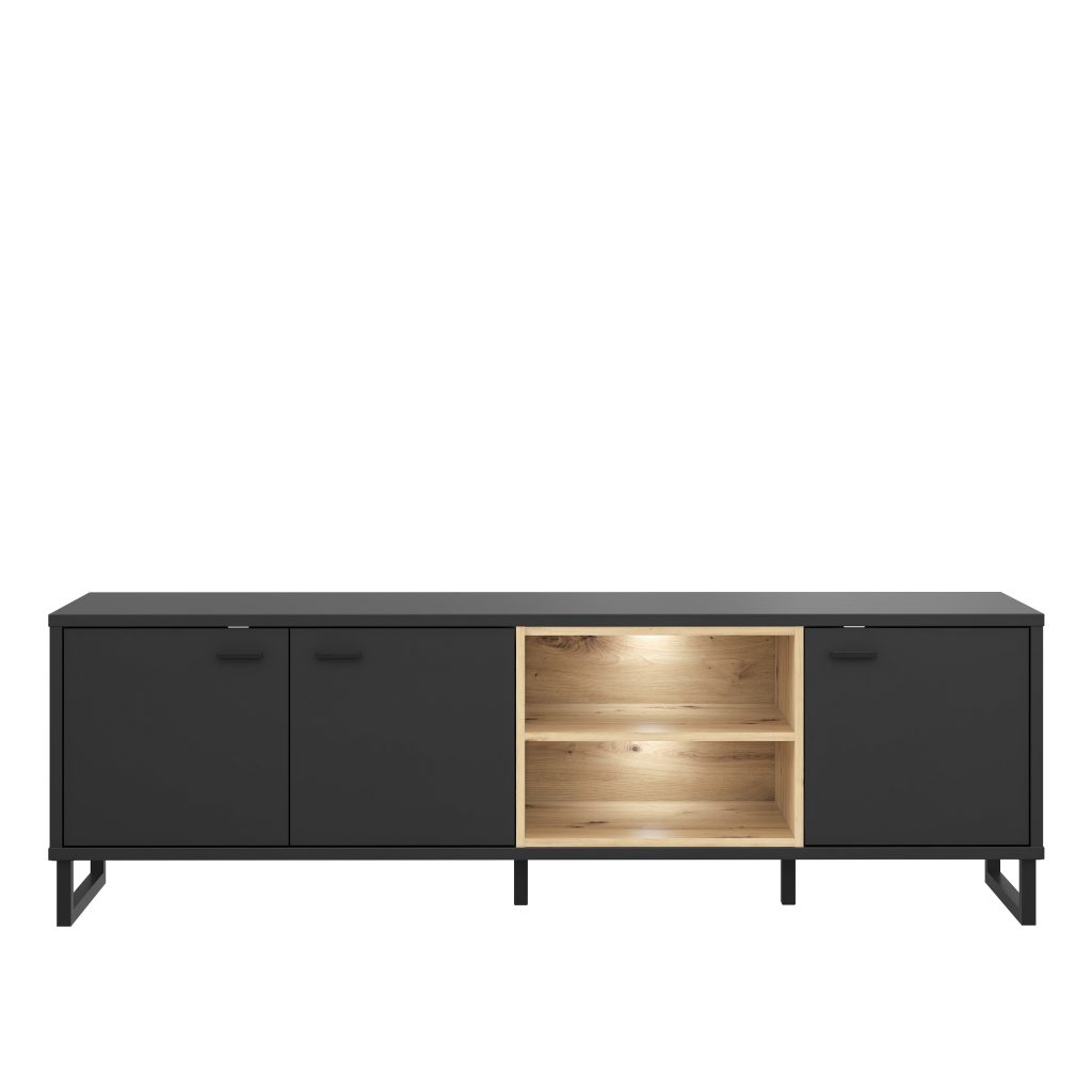 Komoda suteikia stabilų pagrindą televizoriui ir padeda sukurti patogią multimedijos zoną. Ant jos paviršiaus galima pastatyti televizorių, o vidiniuose skyriuose laikyti įvairius įrenginius – nuo dekoderių iki žaidimų konsolių ar kitų elektronikos priedų.