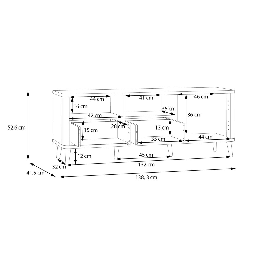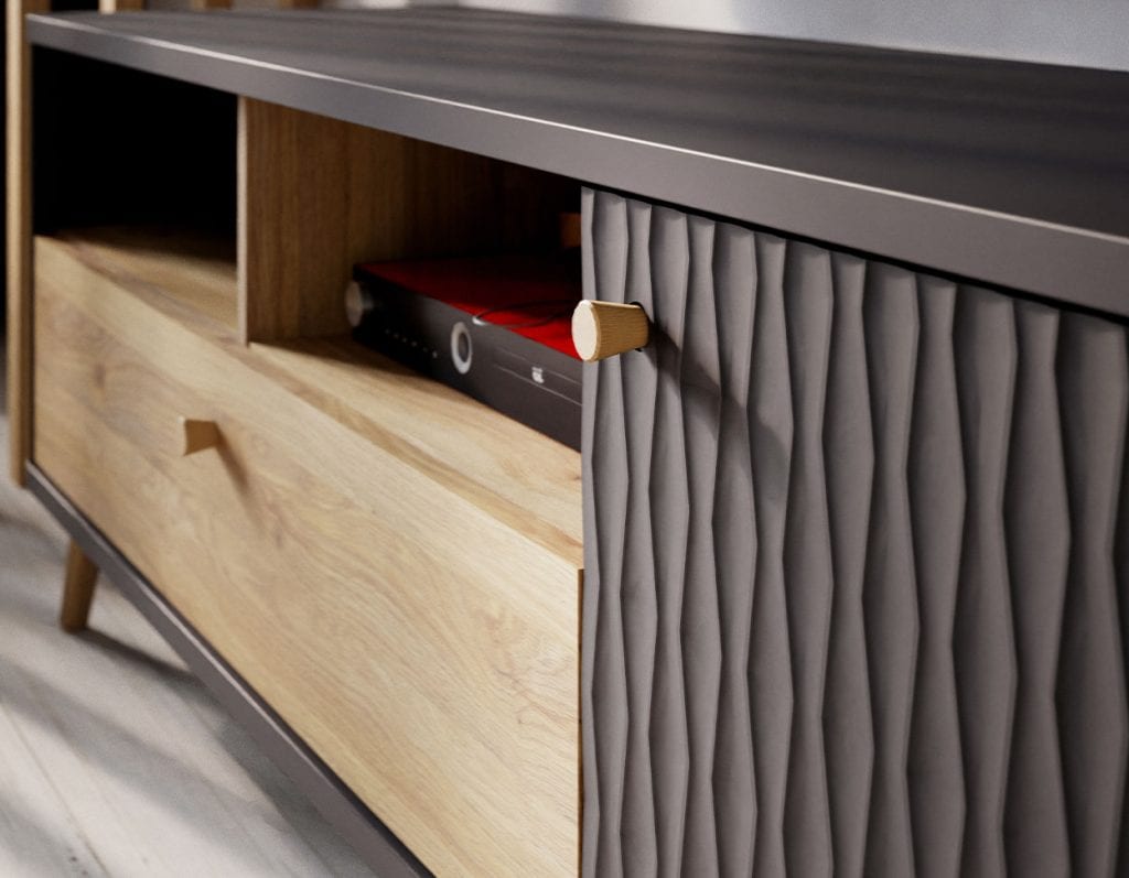Šis baldas puikiai tinka ne tik televizoriaus zonai, bet ir papildomam daiktų laikymui, padedant išlaikyti tvarką ir organizuotą aplinką.