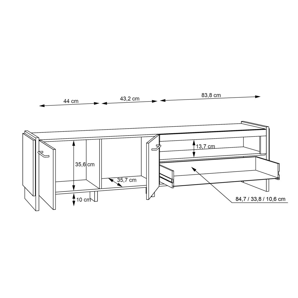 MANN RIVER MNRT131L-M401 TV komoda pasižymi funkcionaliu ir gerai apgalvotu išplanavimu. Skirtingi skyriai leidžia efektyviai organizuoti daiktus, todėl lengva palaikyti tvarką ir išvengti vizualinio chaoso svetainėje.