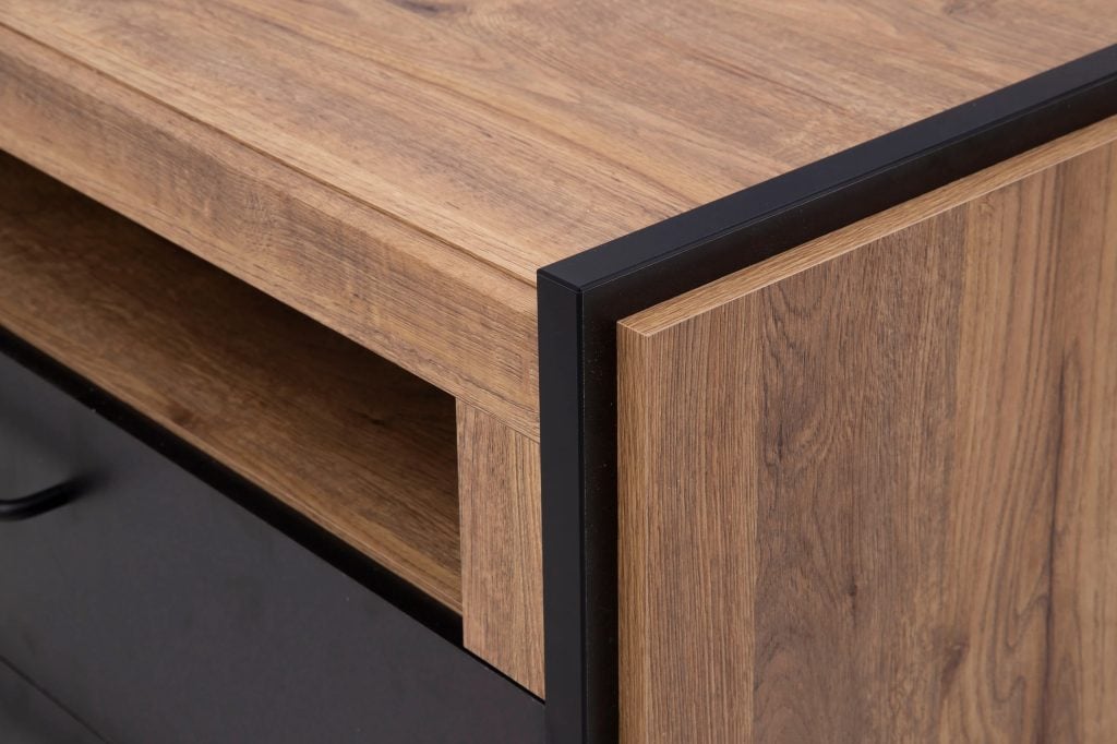 Komoda suteikia stabilų pagrindą televizoriui ir leidžia sukurti patogią multimedijos zoną. Ant jos paviršiaus galima pastatyti televizorių, o vidiniuose skyriuose laikyti įvairius įrenginius – nuo dekoderių iki žaidimų konsolių ar kitų elektronikos priedų.