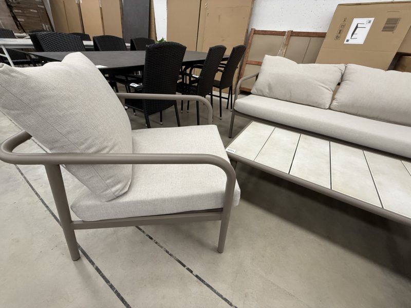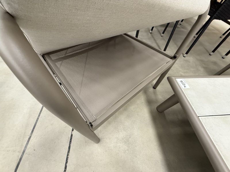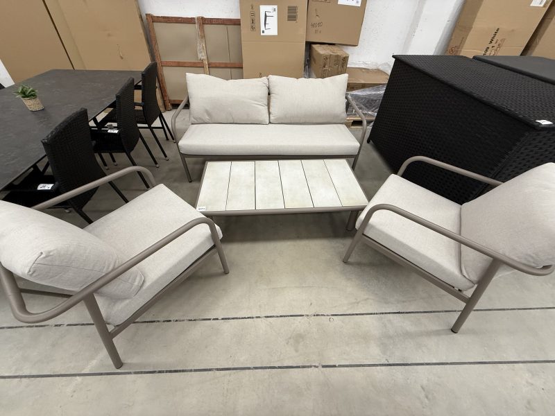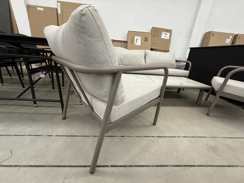 Aliuminio konstrukcija yra vienas pagrindinių šio komplekto privalumų. Ji užtikrina atsparumą drėgmei, korozijai ir įvairioms oro sąlygoms, todėl baldai puikiai tinka naudoti lauke ilgą laiką. Be to, lengva konstrukcija leidžia baldus lengvai perstatyti ir pritaikyti pagal poreikius.