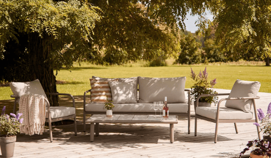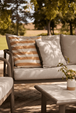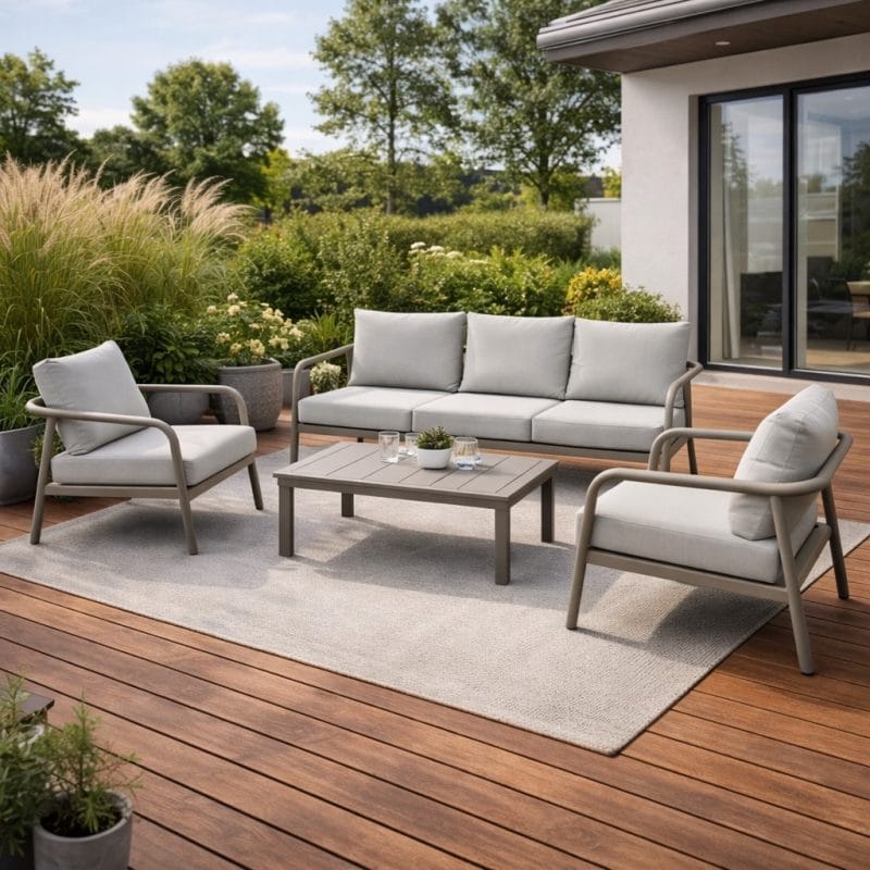 Aliuminis lauko baldų komplektas „Olga” (53835) suteikia aukštą komforto lygį. Minkštos sėdimosios dalys ir pagalvės leidžia patogiai atsipalaiduoti tiek kasdien, tiek ilgesnių susibūrimų metu.