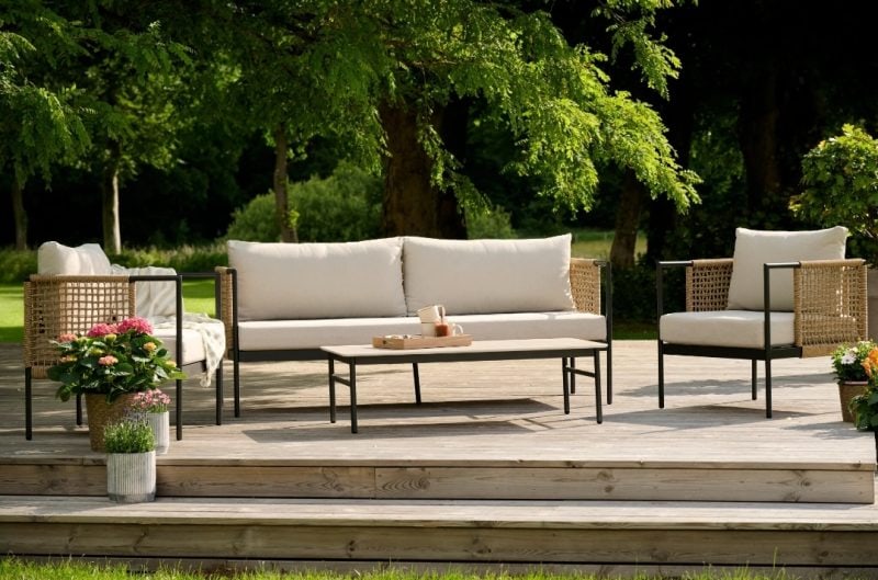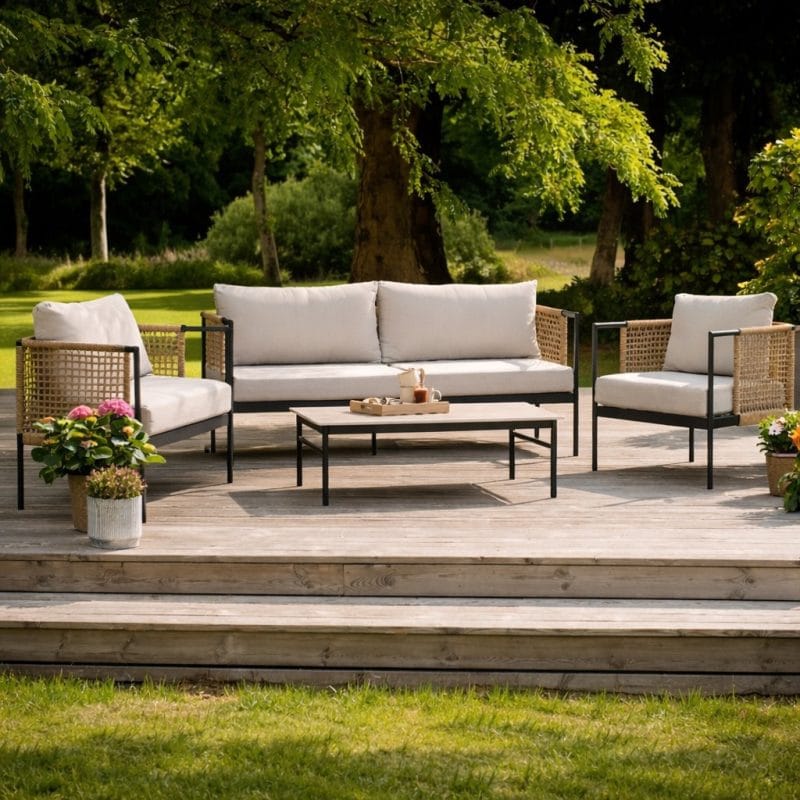 Šis komplektas gali tapti pagrindiniu lauko erdvės akcentu, suteikiančiu jai jaukumo ir stiliaus. Jis padeda sukurti harmoningą ir patrauklią aplinką poilsiui.