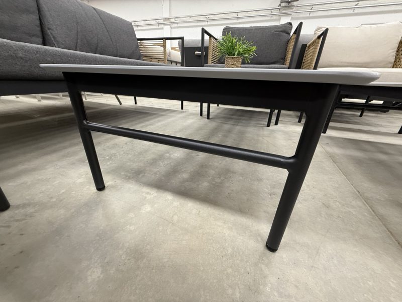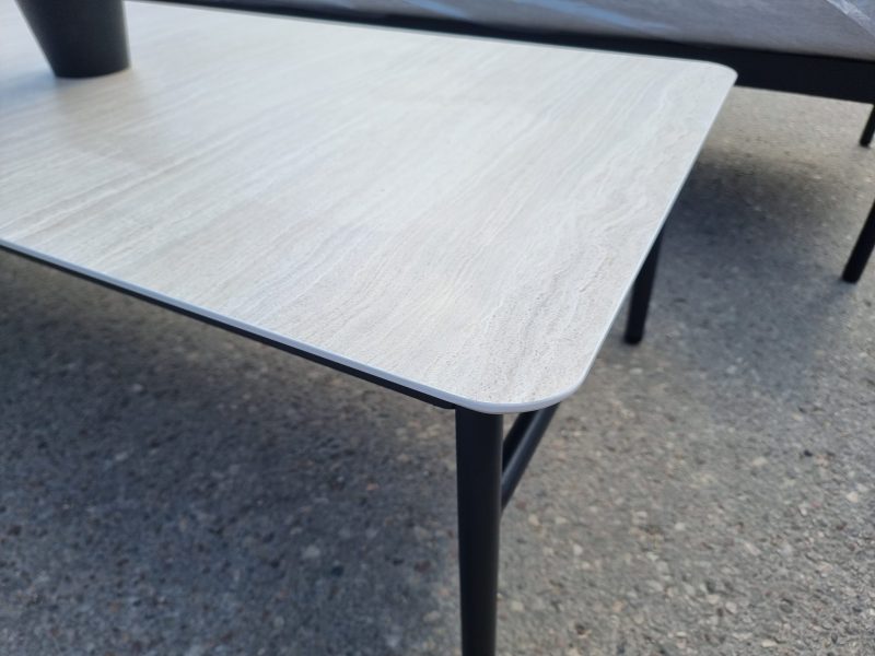Komplekte esantis staliukas suteikia papildomą funkcionalumą – ant jo patogu laikyti gėrimus, užkandžius ar dekoratyvinius elementus. Tai leidžia sukurti patogią ir praktišką aplinką.