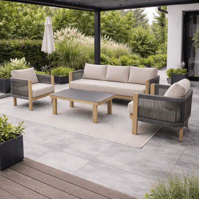 Modernus dizainas pasižymi švariomis linijomis ir subtilia estetika. Lauko baldų komplektas „Sora“ (43144) lengvai dera su įvairiais eksterjero stiliais – nuo modernaus iki skandinaviško ar minimalistinio.