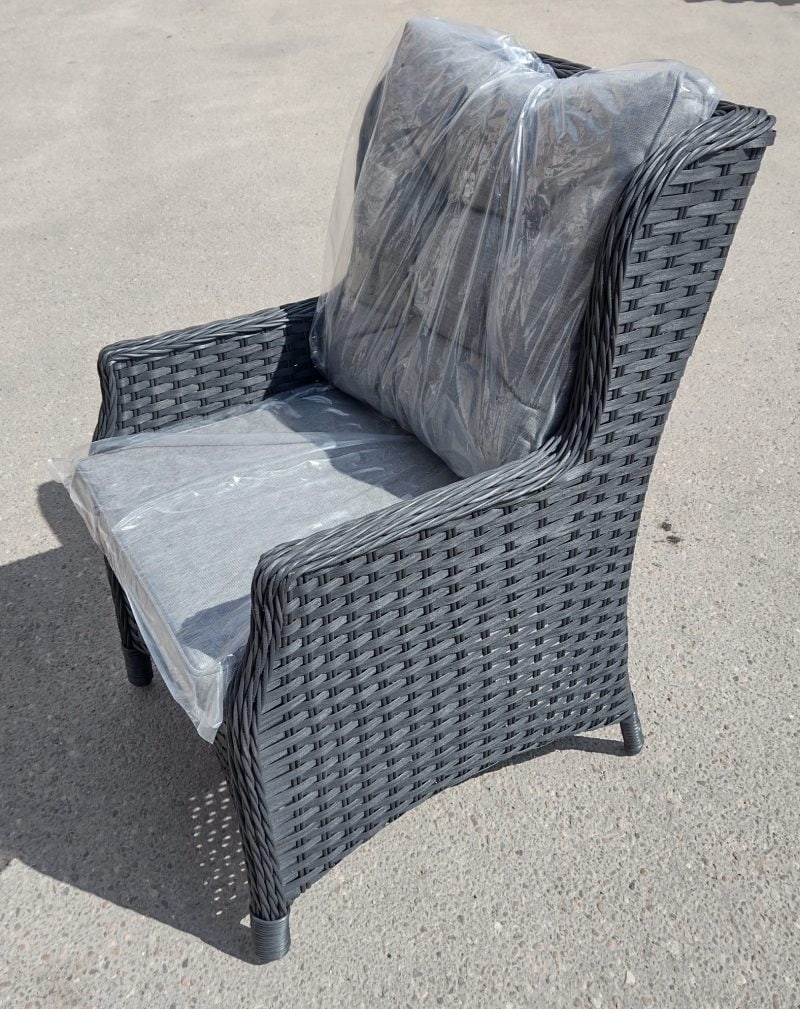 Juoda spalva suteikia krėslui elegancijos, solidumo ir išskirtinio modernumo. Tai universalus pasirinkimas, kuris lengvai dera su įvairiais eksterjero sprendimais – nuo minimalistinio iki industrinio ar modernaus stiliaus.