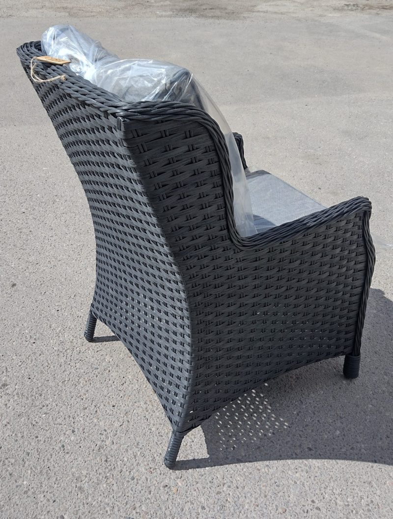 Juodas lauko krėslas „Vila Tjorn” (625453) – elegantiškas ir patogus krėslas jaukiam poilsiui lauke.