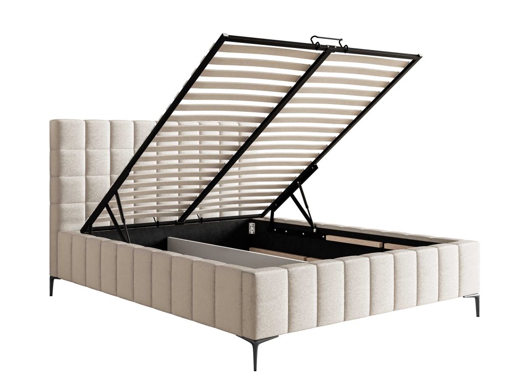 Šio modelio dizainas pasižymi tvirtomis linijomis ir aiškia struktūra, kuri suteikia miegamajam modernų charakterį. Raven-22 audinys išryškina lovos solidumą, o juodos spalvos kojos vizualiai palengvina bendrą vaizdą ir suteikia šiuolaikiškumo. Konstrukcija pritaikyta kasdieniam naudojimui, todėl tai patikimas pasirinkimas erdviam ir tvarkingam miegamajam.