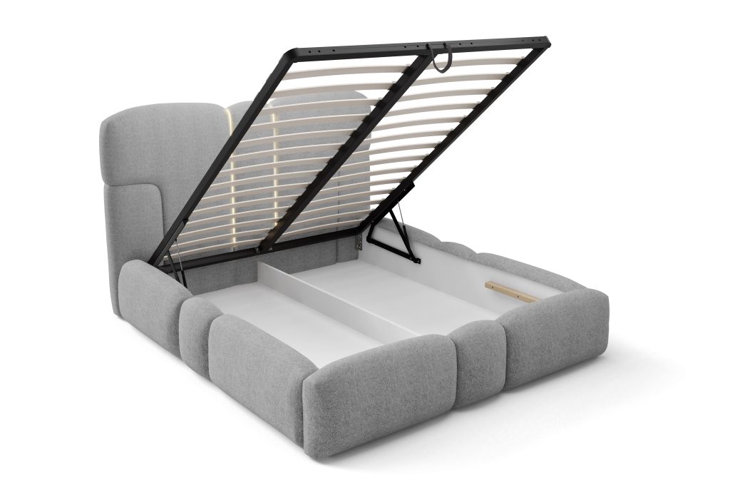 MONTI 160 lova su LED apšvietimu Doha‑16 – modernus ir patogus sprendimas miegamajui. Integruotas LED apšvietimas sukuria jaukią poilsio aplinką.