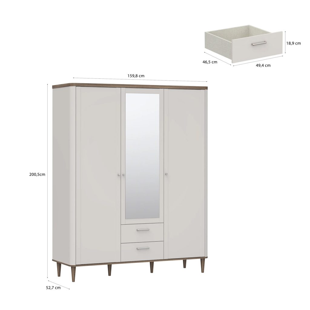 LACETTI LCTS831-M861 spinta sukurta tiems, kurie vertina tvarką, funkcionalumą ir šiuolaikišką baldų dizainą. Tai baldas, padedantis efektyviai organizuoti drabužius, avalynę ir kitus kasdienius daiktus, išlaikant estetišką ir harmoningą namų aplinką. Spinta puikiai tinka miegamajam, prieškambariui ar drabužinei, kur svarbus tiek praktiškumas, tiek vizualinis vaizdas.