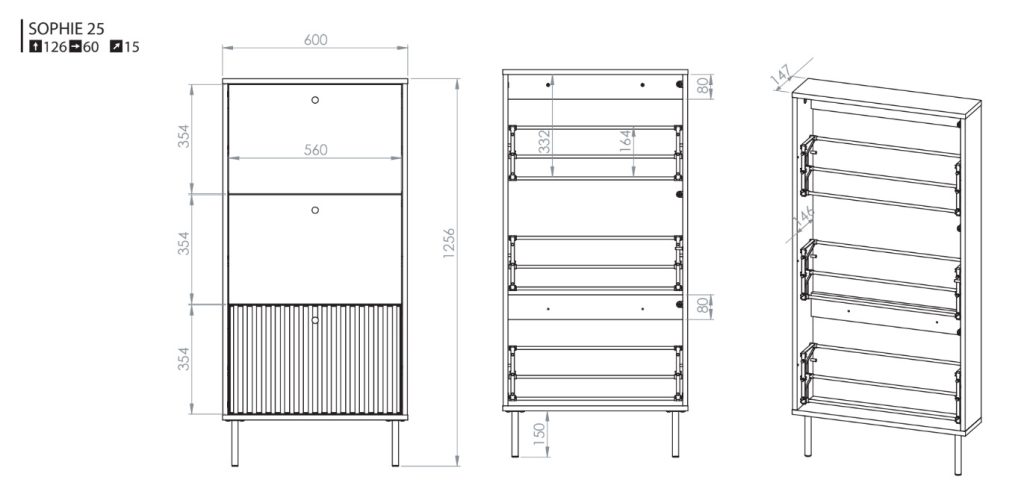 Modernus SOPHIE kolekcijos dizainas pasižymi švariomis linijomis ir universalia estetika. Dėl to SOPHIE 25 batų dėžė-spintelė lengvai dera su įvairiais interjero stiliais – nuo modernaus ir minimalistinio iki šiuolaikinio ar skandinaviško. Ji gali tapti subtiliu, bet svarbiu prieškambario akcentu.