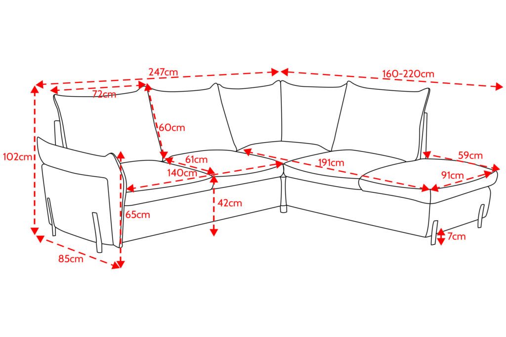 Išmatavimai: A: 102cm P: 247cm G: 160-220cm