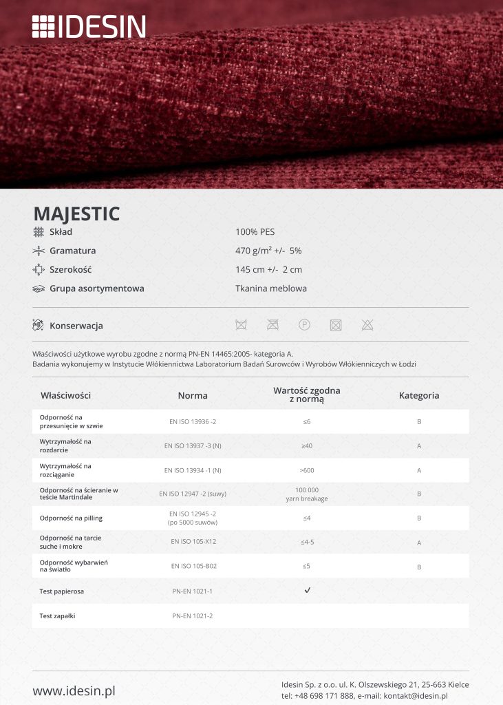 Majestic-605 audinys iš III grupės pasižymi aukštesne kokybe, malonia tekstūra ir atsparumu kasdieniam naudojimui. Audinio paviršius yra švelnus liesti, tačiau tuo pačiu pakankamai tvirtas, kad išlaikytų estetinę išvaizdą ilgą laiką. Neutralus atspalvis suteikia galimybę lengvai derinti minkštą kampą su įvairiais interjero stiliais – nuo modernaus ir minimalistinio iki šiuolaikinio ar skandinaviško.