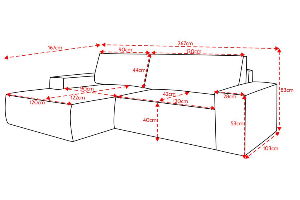 Išmatavimai: A: 83cm P: 267cm G: 167cm