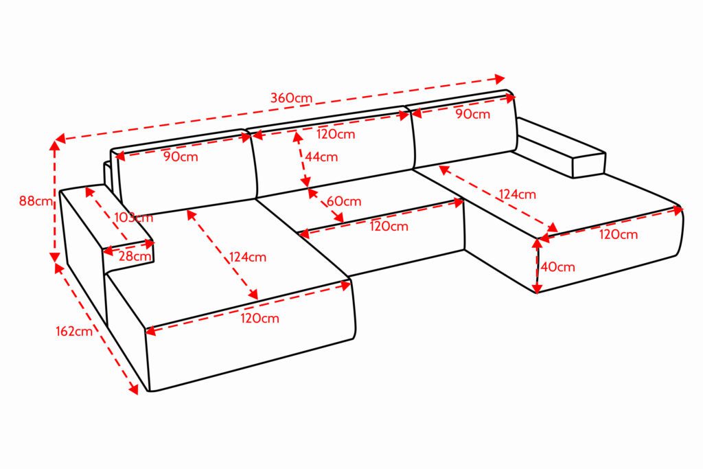 Išmatavimai: A: 88cm P: 360cm G: 162cm