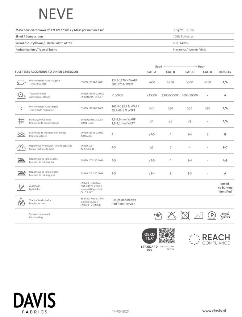 Neve-16 audinys iš II audinių grupės pasižymi malonia tekstūra ir subtiliu, lengvai derinamu atspalviu. Šis audinys pritaikytas kasdieniam naudojimui, padeda išlaikyti tvarkingą baldo išvaizdą ir komfortą ilgą laiką. II audinių grupė užtikrina optimalų kainos, praktiškumo ir estetikos balansą.