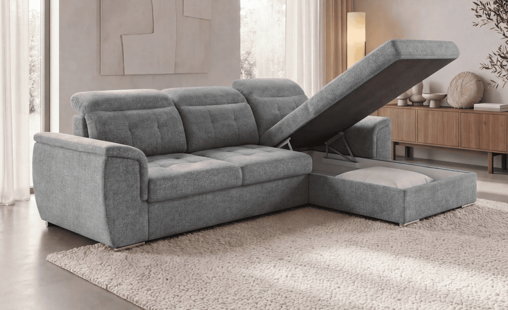 Modernus dizainas pasižymi švariomis linijomis ir universaliu stiliumi. Dėl to minkštas kampas lengvai dera su įvairiais interjero sprendimais – nuo modernaus iki minimalistinio ar skandinaviško stiliaus. Jis gali tapti pagrindiniu svetainės akcentu ir suteikti erdvei jaukumo bei harmonijos.