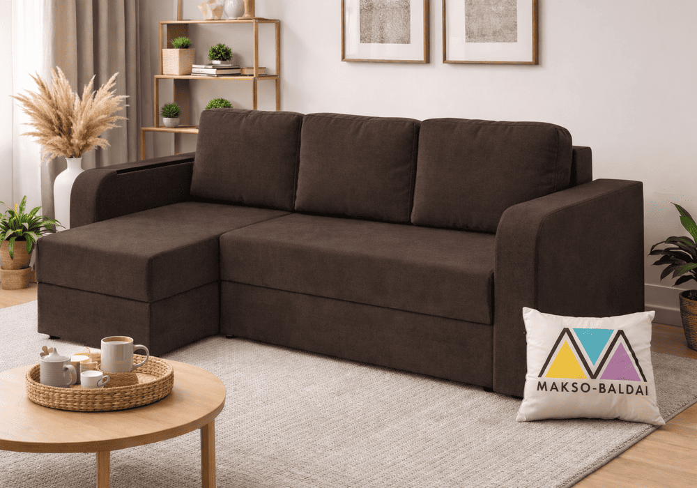 Minkštas kampas BALTIA – universalus kampas su miegama funkcija ir patalynės dėže. Porolono ir Pocket spyruoklių užpildas, patikimas Euro knygos mechanizmas bei galimybė pasirinkti kampo pusę leidžia patogiai pritaikyti baldą kasdieniam naudojimui.