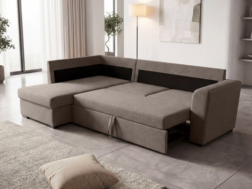 Modernus dizainas pasižymi švariomis linijomis ir universalia estetika. Kampas lengvai dera su įvairiais interjero stiliais – nuo modernaus ir minimalistinio iki skandinaviško ar šiuolaikinio. Jis gali tapti pagrindiniu svetainės akcentu arba harmoningai papildyti bendrą erdvę.