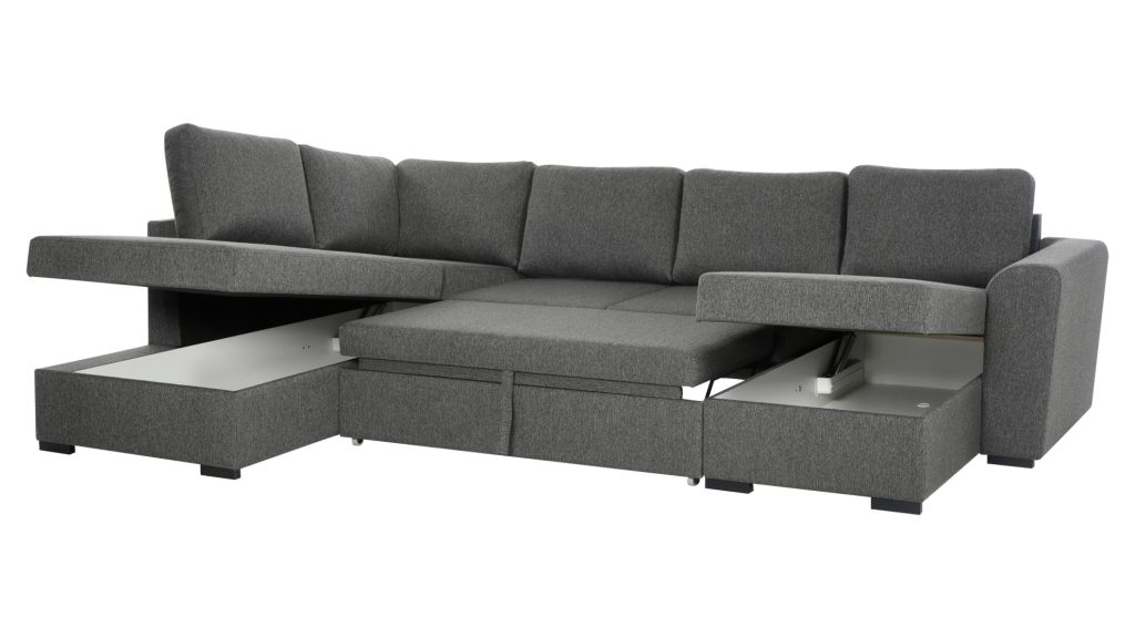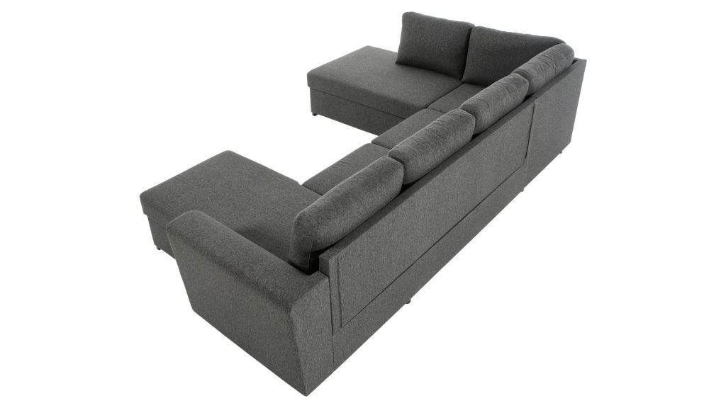 U formos konstrukcija padeda optimaliai išnaudoti kambario plotą ir sukuria patogią erdvę bendravimui. Kampas leidžia patogiai įsitaisyti keliems žmonėms vienu metu, suteikdamas kiekvienam pakankamai vietos. D tipo išdėstymas padeda lengvai pritaikyti baldą prie esamo kambario plano ir sukurti subalansuotą interjero kompoziciją.