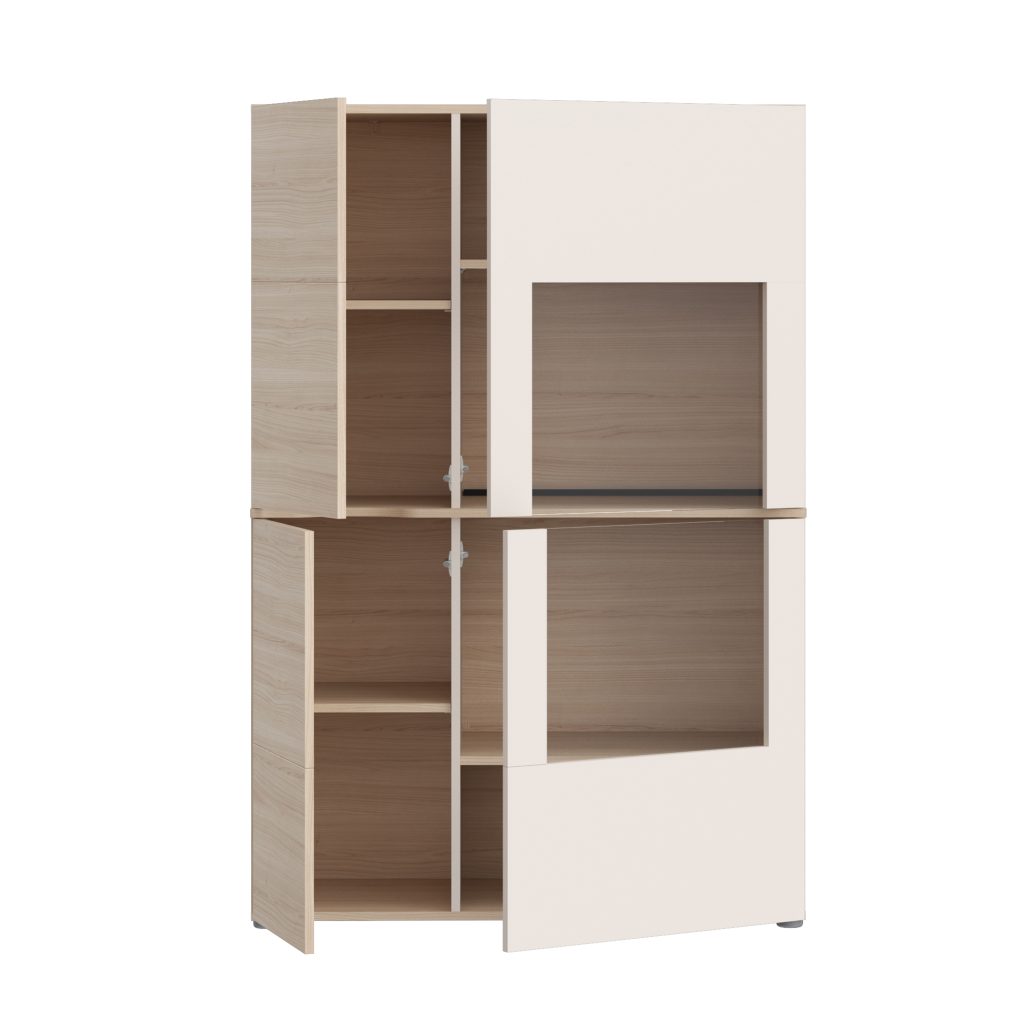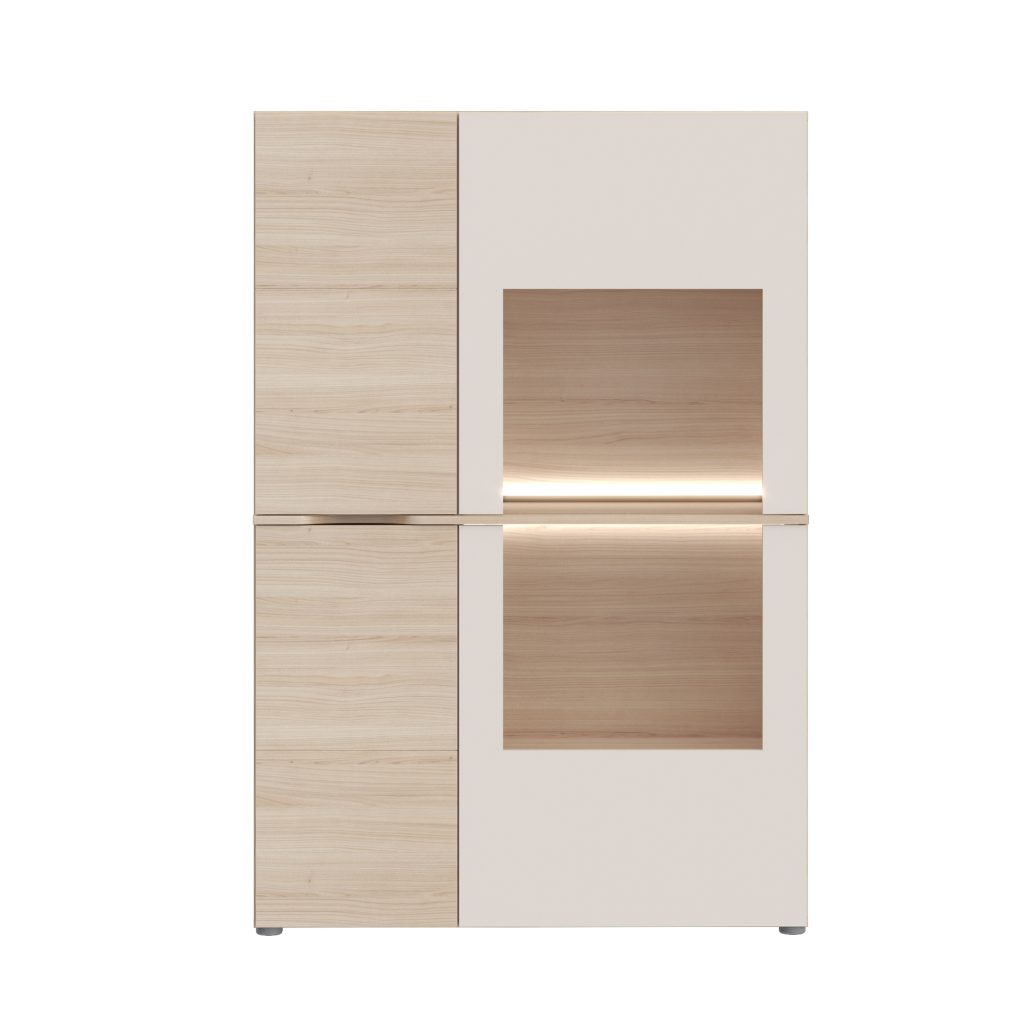 Vitrina pasižymi patogiai suplanuota vidine erdve, kuri leidžia tvarkingai išdėstyti įvairius daiktus. Stiklinės durys suteikia galimybę gražiai eksponuoti indus, stiklo dirbinius, dekoratyvinius elementus ar kolekcijas. Tai leidžia sukurti jaukią ir išskirtinę kambario atmosferą, kurioje kiekviena detalė tampa interjero akcentu.