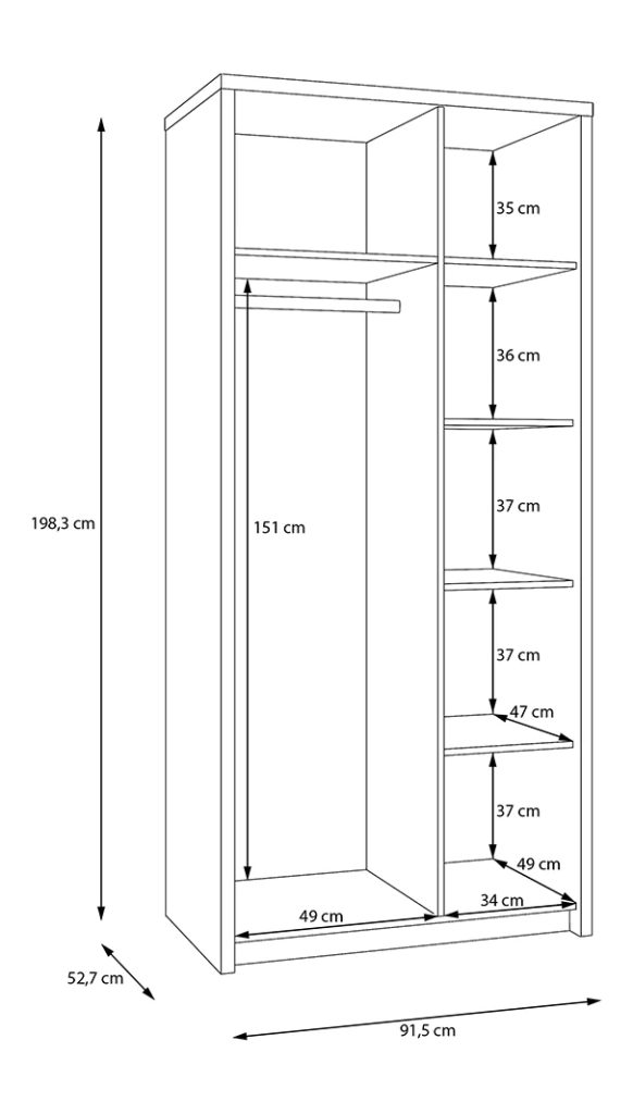 Išmatavimai: A: 198cm P: 92cm G: 53cm