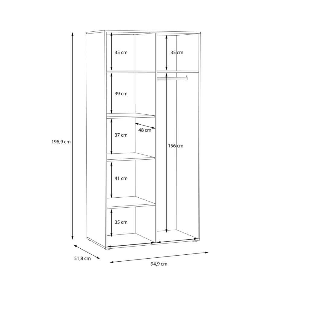 Išmatavimai: A: 197cm P: 95cm G: 52cm