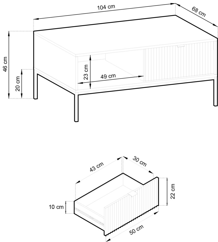 Išmatavimai: A: 46cm P: 68cm G: 104cm