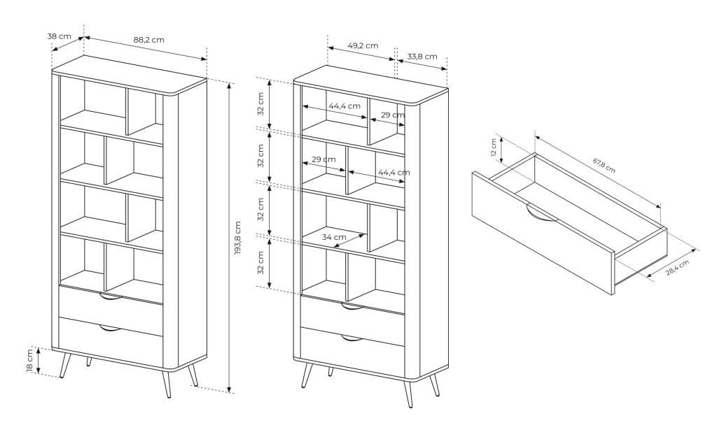 Išmatavimai: A: 194cm P: 88cm G: 38cm