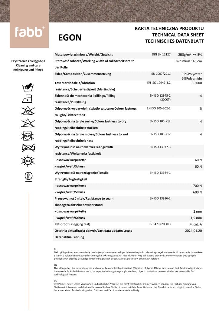 FABB Egon-40 šviesiai rudas audinys išsiskiria šiltu, natūraliu tonu. Ši spalva kuria jaukią atmosferą ir puikiai dera su medžio tekstūromis, šviesiais ar kontrastingais stalais bei įvairiais dekoratyviniais elementais. Šviesiai rudas atspalvis padeda išlaikyti harmoningą erdvės vaizdą ir suteikia interjerui švelnumo.