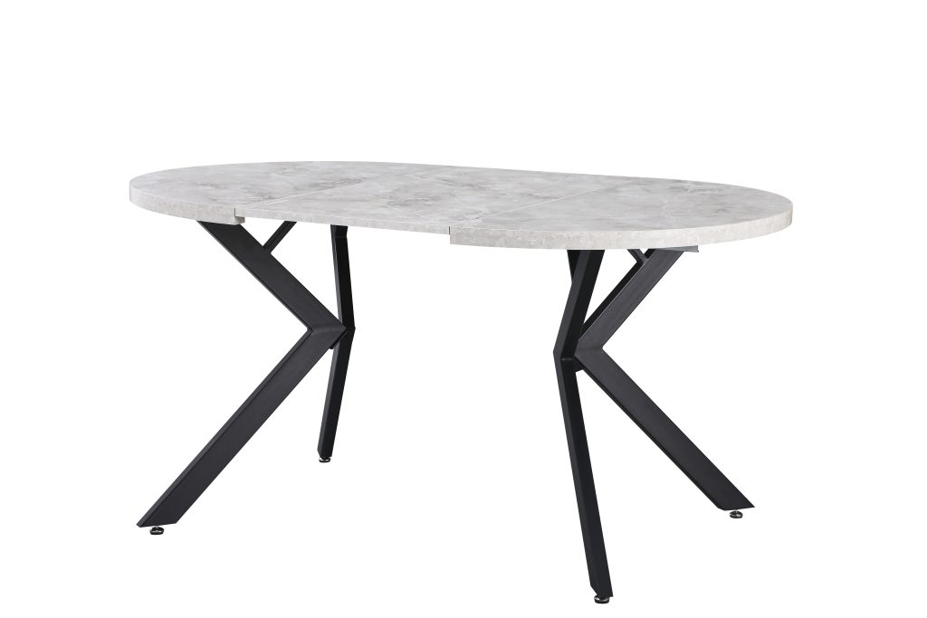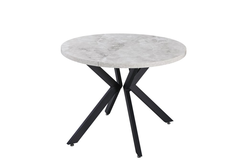 PERO apvalus išskleidžiamas stalas (Grey Marble Melamine Nr.13) – modernus ir funkcionalus valgomojo baldas su elegantišku pilko marmuro efekto paviršiumi.