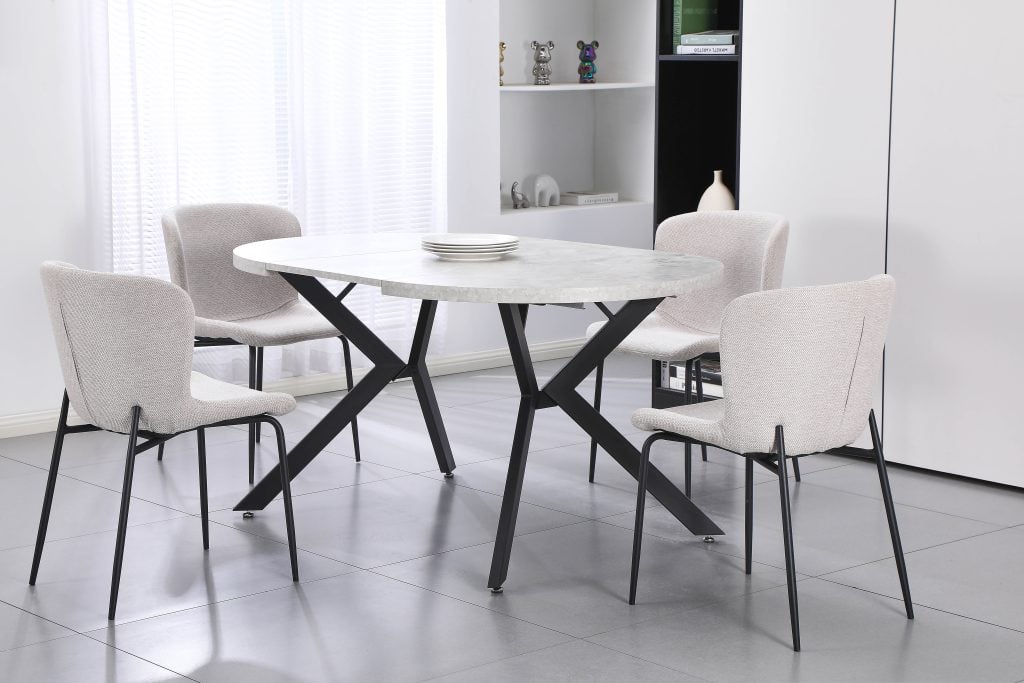 Apvali konstrukcija leidžia patogiai išdėstyti kėdes ir lengvai judėti aplink stalą, todėl jis ypač tinka mažesnėms ar vidutinio dydžio erdvėms. Išskleidimo funkcija suteikia papildomo funkcionalumo – prireikus stalas greitai padidinamas ir pritaikomas didesniam žmonių skaičiui. Tai praktiškas sprendimas, leidžiantis vieną baldą naudoti tiek kasdien, tiek šventinėmis progomis.