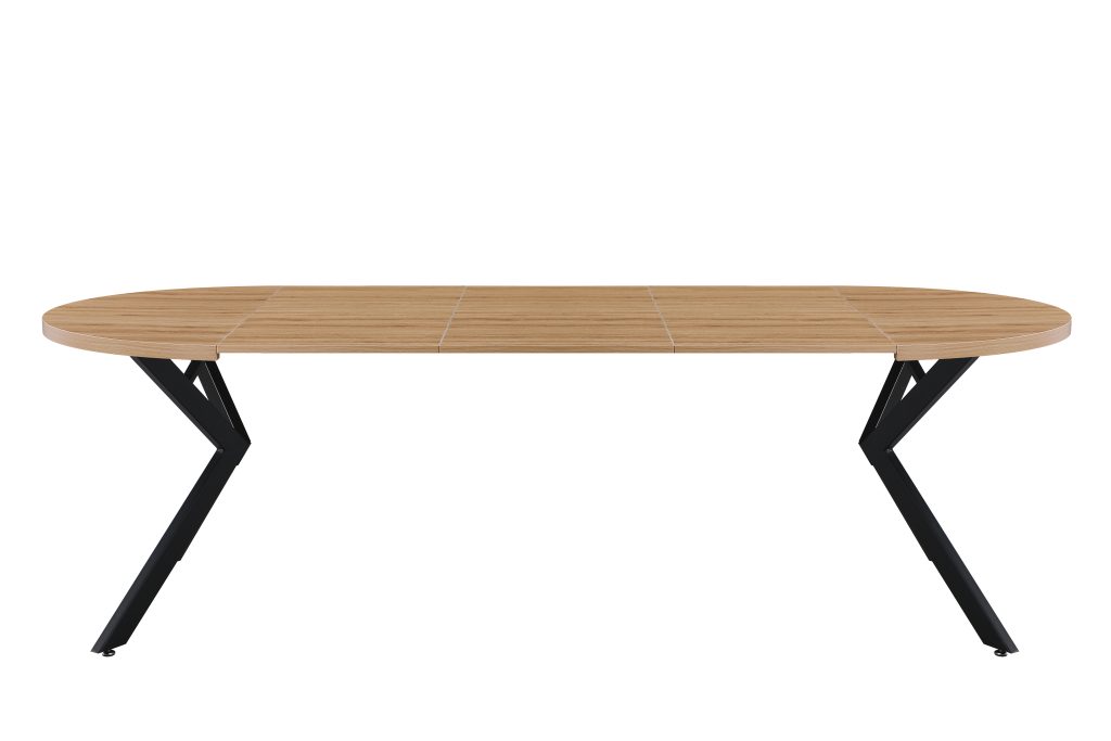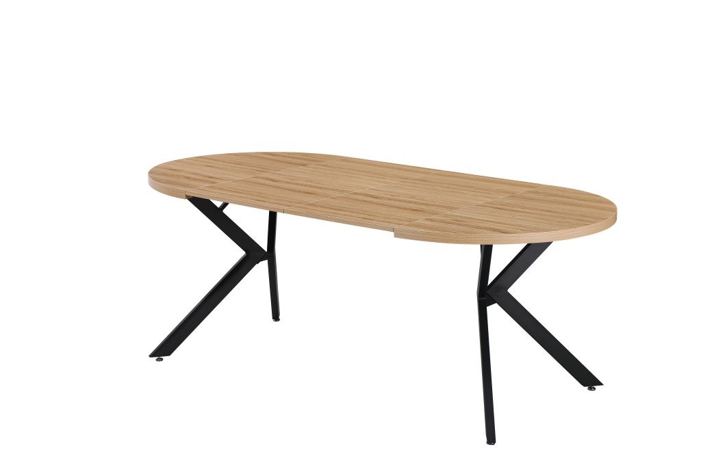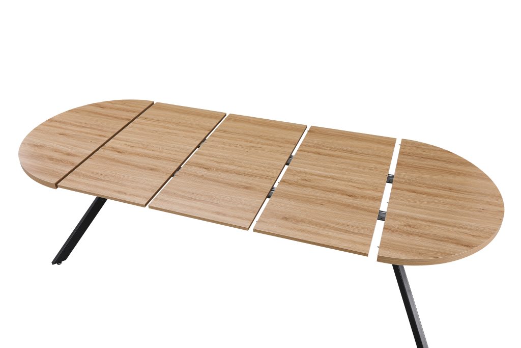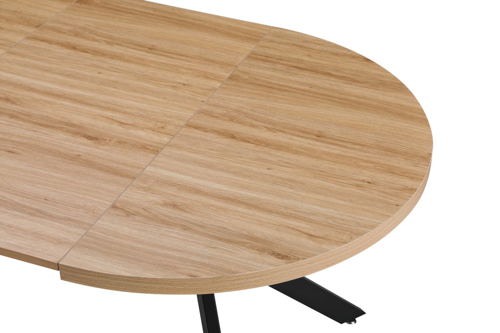 Apvali konstrukcija leidžia patogiai išdėstyti kėdes ir optimaliai išnaudoti erdvę, ypač mažesniuose valgomuosiuose ar virtuvėse. Išskleidimo funkcija suteikia papildomo funkcionalumo – prireikus stalas lengvai padidinamas ir pritaikomas didesniam žmonių skaičiui. Tai praktiškas sprendimas, leidžiantis vieną baldą naudoti tiek kasdien, tiek šventinėmis progomis.