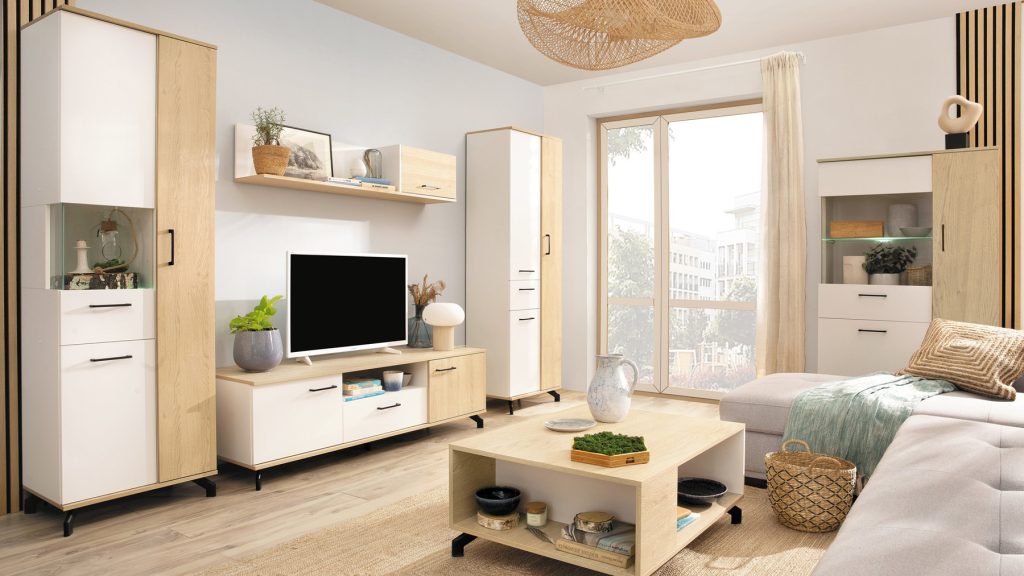 SANTIAGO svetainės baldai (Dab biszkoptowy/Balta)